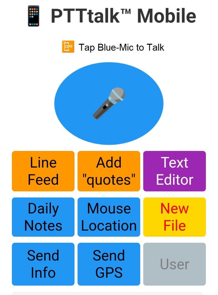 PTTtalk is the ultimate dictation tool. Talk to your phone, have it type what you say into any program. On the road, just talk to your phone and have a new document with text output waiting on your computer when you return. You can even dictate a letter – from the road – directly onto your secretary’s computer without them even knowing you are doing it (permission in advance required, no security invasions).